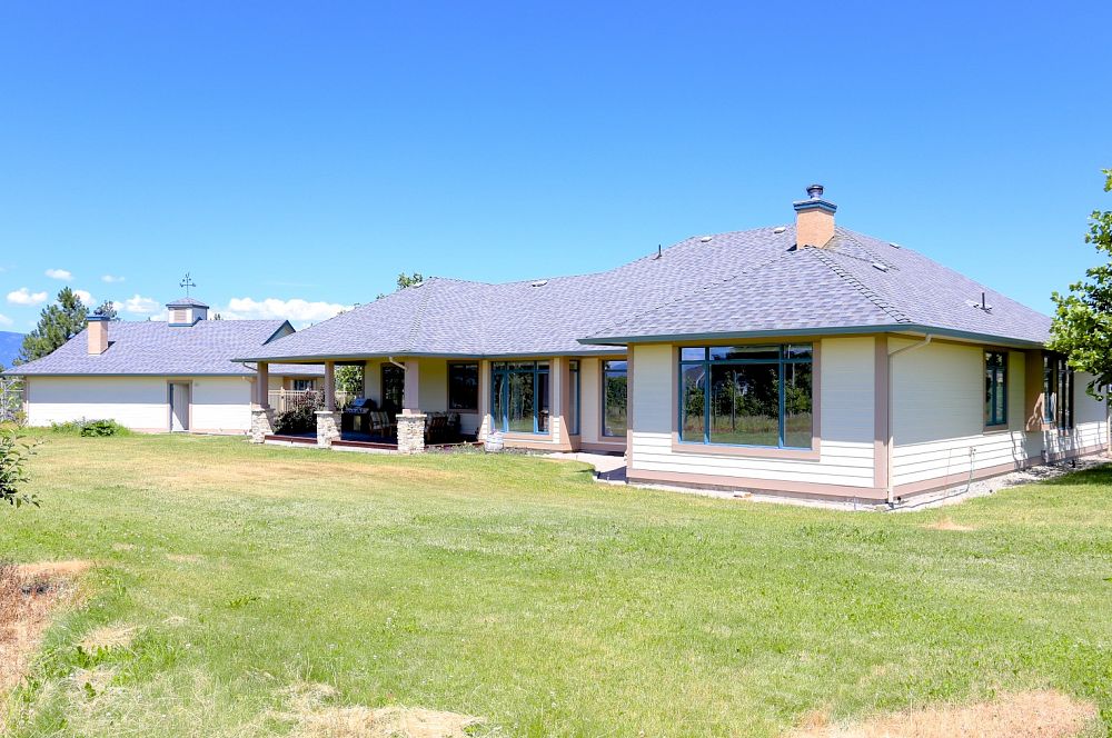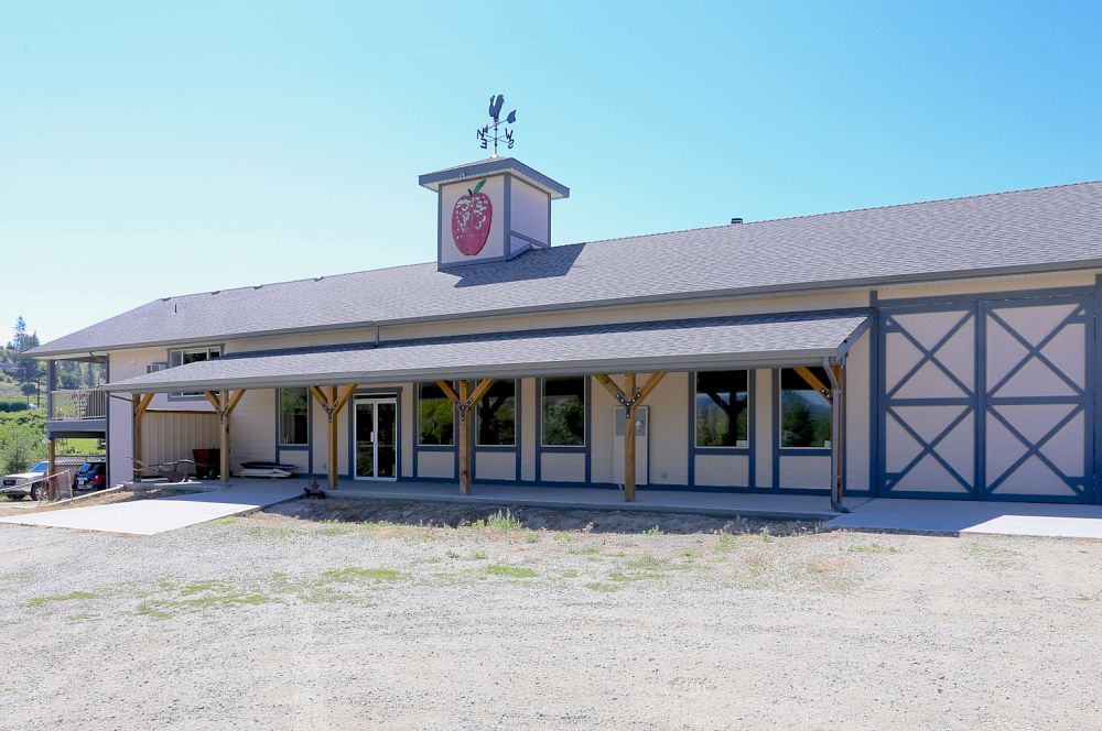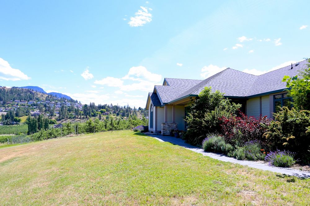 12.12 Acre Orchard Estate! Central Belgo location with commanding views, this property includes a ’02 custom built 2659 sf rancher, and a full commercial fruit stand building, complete with a deluxe two bedroom farm help suite. 2.5 acres of modern apple varieties and lots of room for more crops. The meticulous home features 9’ ceilings and a great room layout plus a dining room and office off of the foyer. The kitchen is nicely situated in the heart of the home with granite counters and new stainless appliances. The spacious master includes a no step glass shower in the ensuite and a walk in closet. There are two more large bedrooms and a den as well as a full bath. On the other side of the great room is a rec room complete with a wet bar, as well as a powder room and bright laundry. Lots of thoughtful details including metal clad wood frame windows, covered walnut verandas in the front and back and a high crawlspace for loads of storage. Perfect for hobbyists with a triple car garage and long paved driveway! Built in 2008 the commercial building is like new and has reinforced floors for forklift, two large overhead doors, office, emergency exits and handicap friendly washroom, all to code. Outside is a large covered display area and there are plans in place for a separate driveway and parking area. Rare agri business opportunity! Call Jerry Geen 250-870-3888 or Elya Byrne 250-317-1980 your Okanagan farm and acreage experts.
